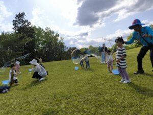 ブログ ★☆飛ばそう!ジャンボ しゃぼん玉☆★ 投稿日: 2025年5月4日(日) 5/4(日)ゴールデン・ウィーク真っ最中! リリー工房の佐久間威至さんを講師に迎え、飛ばそう!ジャンボしゃぼん玉を開催しました 参加者の皆様には、ジャンボ しゃぼん玉を飛ばす道具を作るところから体験。 晴れた青空にふわふわ流れるシャボン玉を飛ばし、子どもも大人の皆様も目をキラキラ輝かせながら楽しむ様子が見られました。 ブログ一覧へ戻る