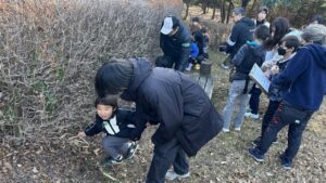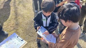 手元のシートで探すグッズを確認して、目をこらして地面や植木を覗き込みます。