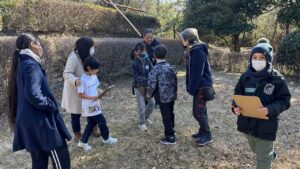 芝生広場でネイチャーゲーム「カモフラージュ」を体験していただきました。