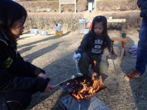たき火が出来上がったら、おやつのマシュマロタイム!
