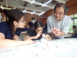 左官の仕事を知ってもらうこと、また私たちの生活の近くにある「土」をテーマに自然に触れてもらうことを目的としていました。