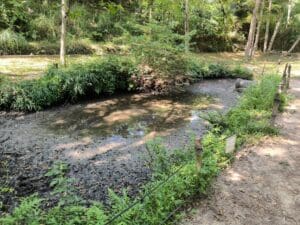 プロジェクトの一環として、三重県上野森林公園では乾燥が進む園内の湿性植物園を湿地に戻す取り組みを行なっています。